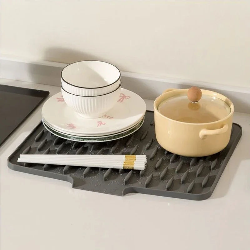 AquaMat™️ 1pc Silicone Drain Pad Drying Mat For Pot Dish Drain Mat For Kitchen Tableware Non-slip Mats Anti-scald Coaster Kitchen Utensils